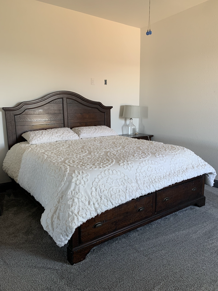 Includes king size bed, 2 side table and dresser. Along with its own private bath and closet.